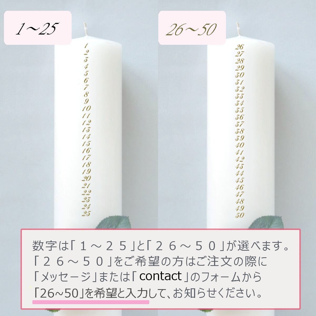 ご注文をいただいてからキャンドルに取り付けますので